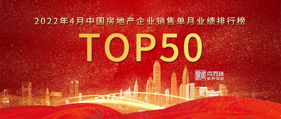 附:2022年4月中國房地產企業TOP50銷售排行榜