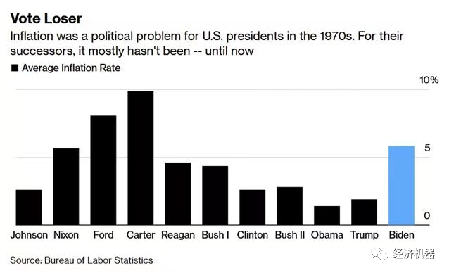 圖10、美國各界總統執政時期通脹水平
