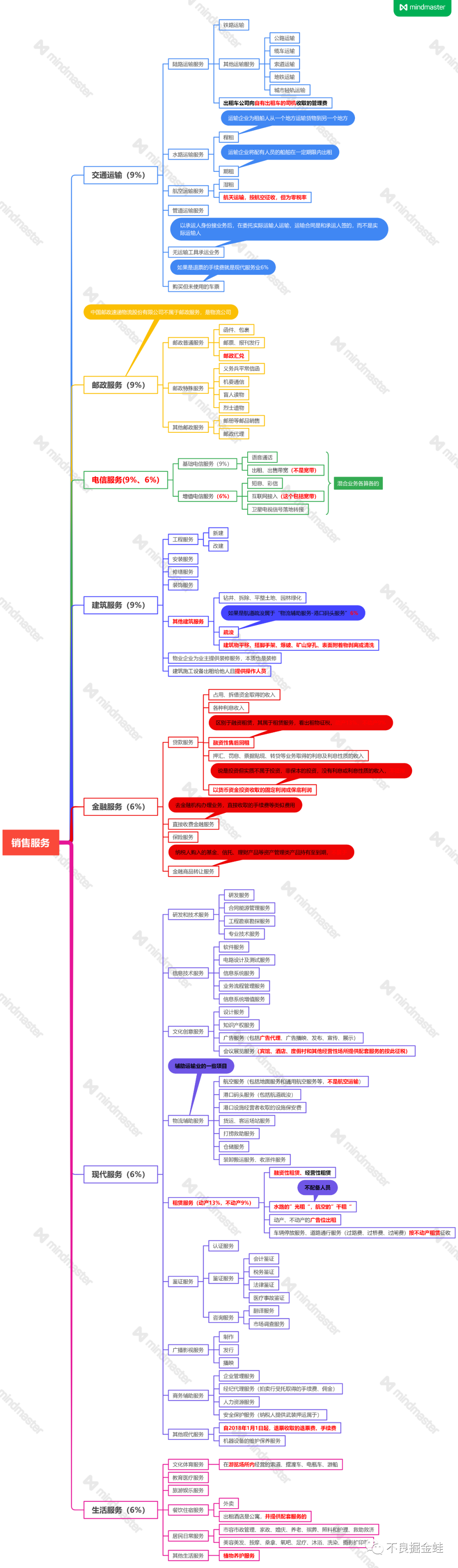 今天要處理的事情不是很多,只有一個追加一人有限責任公司股東為被執行人的申請。已經準備好材料交到法院,正好這幾天在看增值稅的文章。關于《增值稅銷售服務類的征稅范圍和部分稅率》做了個腦圖,分享給大家。如果有資產處置思路中是關于出租、提供運營服務類的,可以了解一下。