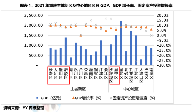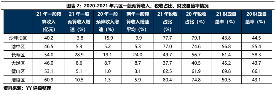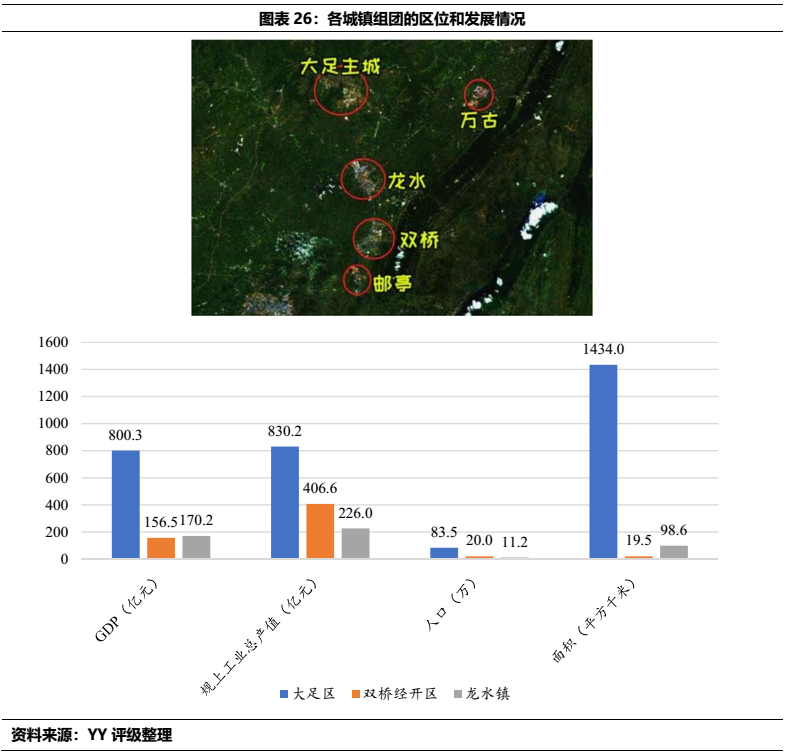 重慶的債券市場由網紅步入穩健,但區域間方差較大,值得我們下沉探究,本文將選取其中六大受市場關注的區域進行展開:渝中、沙坪壩、涪陵、璧山、大足、長壽;為啥選這幾個樣本構建梯隊,原因有三,首先是從城區遠近來看,渝中沙坪壩等屬于核心城區,璧山等新城區,大足長壽等更遠些;其次是工業條件和發展程度看,也有明顯的梯隊;最后從市場認可和網紅程度看,大足、長壽都是易受關注主體,故而選取6個樣本,側面剖析重慶的特征。