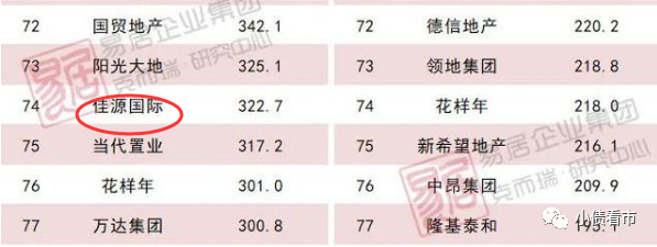 據克而瑞數據,2021年佳源國際以322.7億操盤金額位居房企第74位,中天城投排第129名。