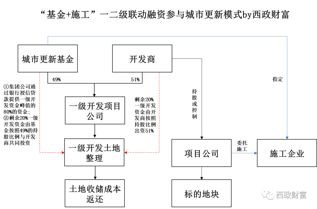 1. 城市更新基金與開發商共同成立一級開發項目公司,其中城市更新基金持有一級開發項目公司49%的股權,開發商持有51%的股權;
