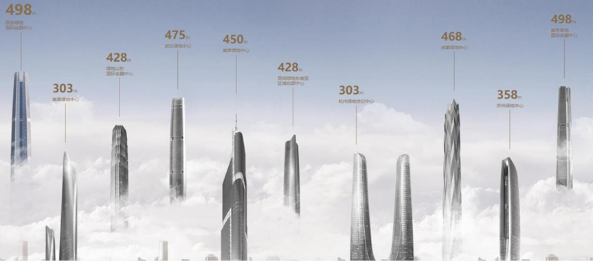 從總高450米的南京綠地廣場,到636米的武漢綠地中心(后改為475米),目前的世界十大高樓近一半來自綠地。以至坊間賦予綠地集團一個響亮的稱號——“摩天大樓專業戶”。