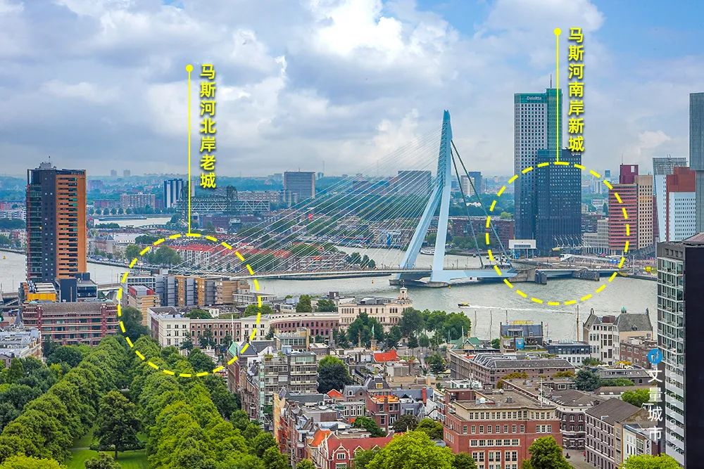 與鹿特丹老城「一河之隔」的馬斯河南岸,曾是鹿特丹的工業碼頭;港口西遷后,碼頭荒廢、人口大量遷出,加之河流的阻隔作用,南岸日趨凋敝,甚至一度成為色情行業聚集地。