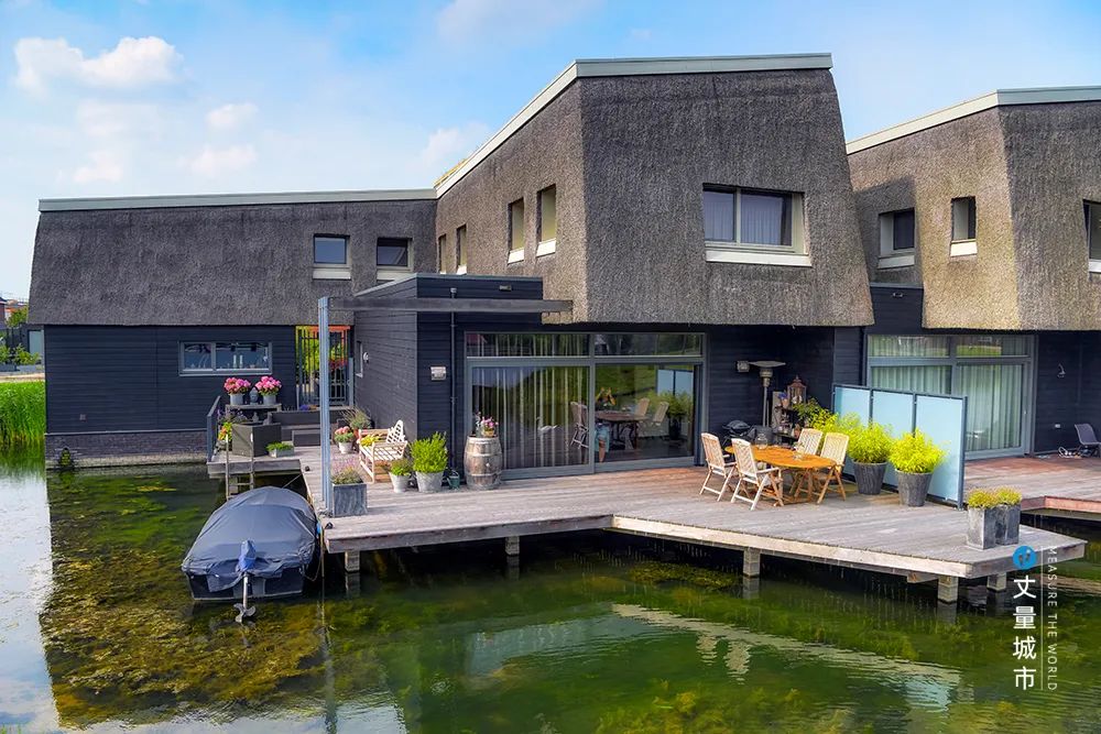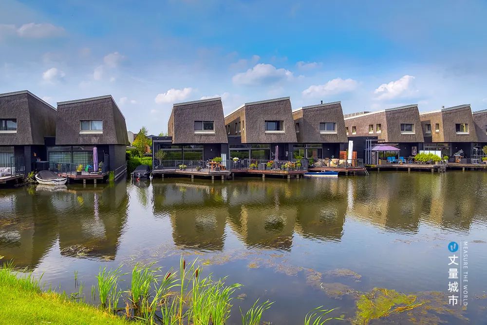 如其中的「水上九住宅」,建于堤壩之上,三組建筑由水道分開,每個建筑的露臺毗鄰水面,整個住宅猶如漂浮水上,為居民提供了獨特的濱水生活體驗。