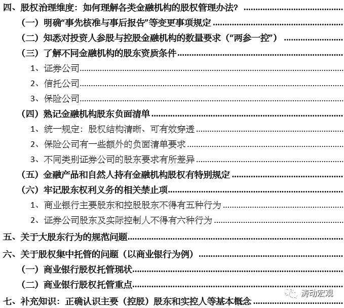 (四)在公司治理層面,“實質重于形式”以及“穿透”已經成為兩大原則,這一點需要明確,意味著監管部門的自由裁量權實際上大很多,而金融機構及其股東、關聯方能夠規避的空間非常小。
