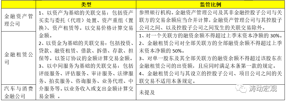 同時文件明確,金融資產管理公司的監管比例參照銀行機構,而汽車與消費金融公司的監管比例則沒有提及。