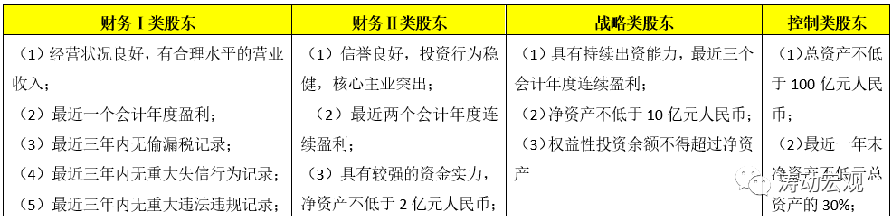 (2)主要股東應滿足凈資產不低于5000萬元人民幣;不存在凈資產低于實收資本50%、或有負債達到凈資產 50%或者不能清償到期債務的情形,取消了之前“持續盈利要求”。