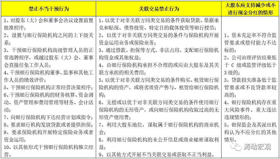 (十)嚴禁大股東對銀行保險機構的不當干預,同時嚴禁大股東與銀行保險機構開展不當關聯交易,鼓勵大股東減少與銀行保險機構開展關聯交易的數量和規模,禁止不當關聯交易和不當干預行為主要包括: