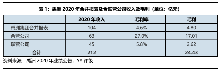 3月30日,公司召開線上業(yè)績發(fā)布會并發(fā)布了更為詳細的2020年度業(yè)績公告,得知公司2020年凈利潤低主因當年確認收入大幅減少,2020年公司營收104億元,同比減少128億元;毛利僅有4.8億元,同比減少56億元,毛利率僅4.6%。同時,2020年,禹洲的合營公司實現(xiàn)全口徑收入63億元,其中物業(yè)銷售收入在62億元以上,毛利率約27%;合營公司全口徑收入和毛利率分別約45億元和5.8%。