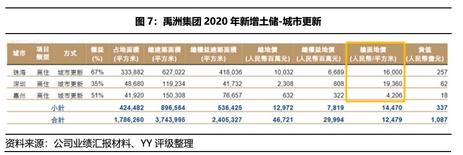 3個新增的城市更新項目分別位于珠海、深圳和惠州,除深圳項目以外,考慮到珠海和惠州近期平均房價分別為2.18萬元和1萬元/平方米,公司的拿地成本不占優(yōu)勢,且城市更新項目通常轉化速度慢,該部分貨值預計回報期較長。