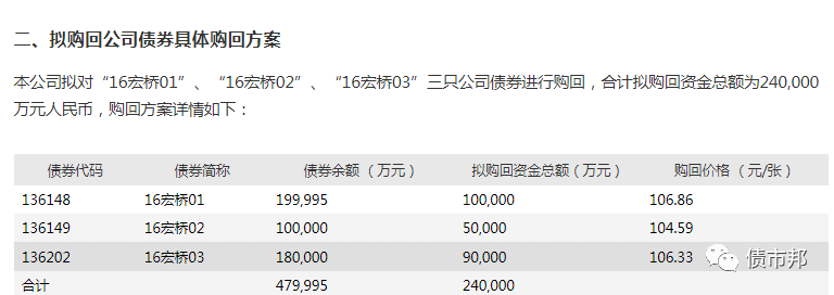 但后來(lái)細(xì)細(xì)一分析,不對(duì)啊,宏橋回購(gòu)方案只是針對(duì)3筆馬上要在明年1月份到期的公司債,就連2月份要到期的16宏橋05都不愿意帶上。所以別看這三筆待回購(gòu)債券的到期收益率高,但是凈價(jià)和面值差的不多。