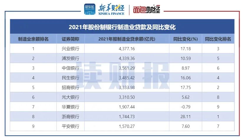 新華財經(jīng)及面包財經(jīng)研究員對9家上市股份制銀行財報進(jìn)行梳理,通過信披數(shù)據(jù)從普惠型小微企業(yè)貸款余額、涉農(nóng)貸款、制造業(yè)貸款等角度,客觀展現(xiàn)股份制銀行支持實(shí)體經(jīng)濟(jì)情況。