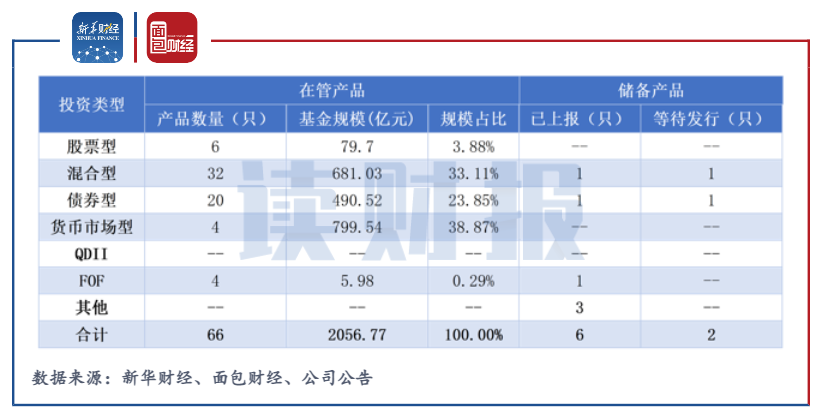 同期,農(nóng)銀匯理在管公募基金共有66只。從產(chǎn)品類型來看,混合型基金和債券型基金最多,分別有32只、20只;貨幣型基金的管理規(guī)模最大,達(dá)到799.54億元,占總規(guī)模的38.87%。儲備產(chǎn)品方面,已上報產(chǎn)品有6只,等待發(fā)行的產(chǎn)品有2只。
