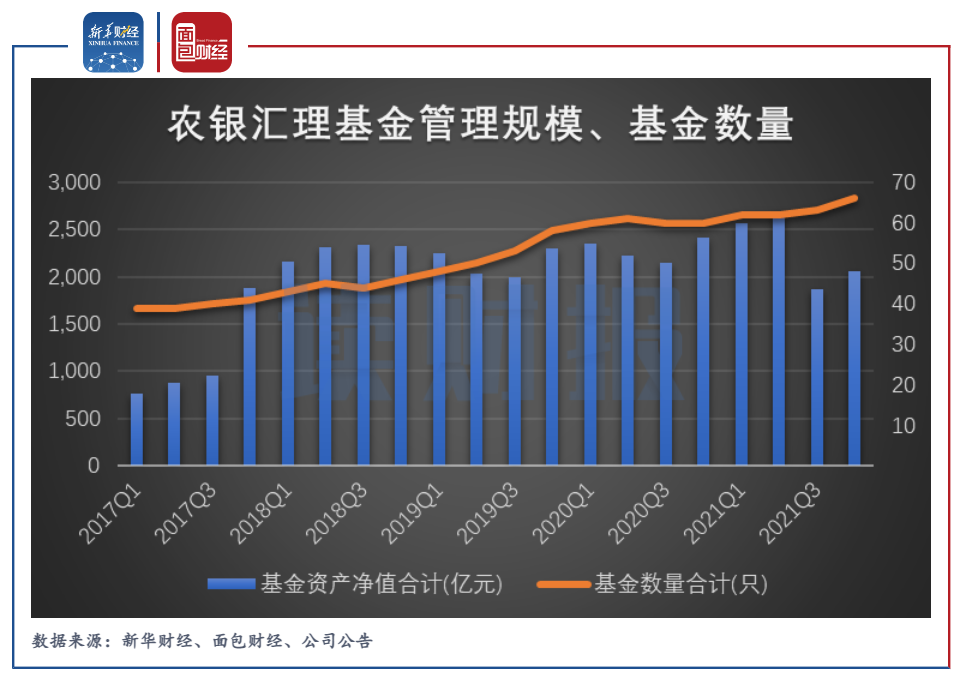 圖2:2017年-2021年農(nóng)銀匯理基金管理規(guī)模、基金數(shù)量