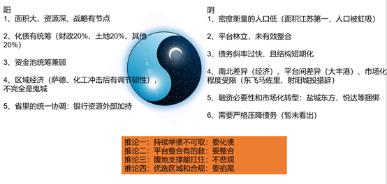 那么,市級平臺到底怎么看?至少在地市級層面,整體的統(tǒng)籌能力和稟賦也在,所以核心平臺市場認(rèn)可度有時候可能會有一些分歧,但整體來講,短期配置視角的話,安全度都還能看,不用過度悲觀,降低增量、壓降存量、平臺整合,也適用市級平臺。