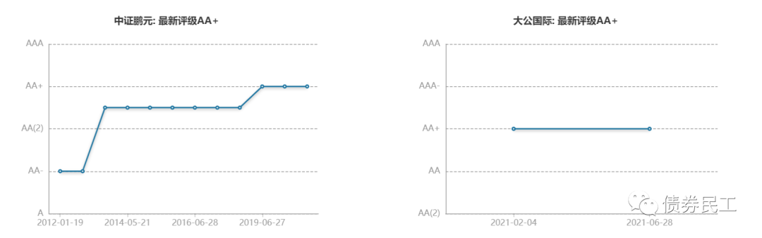 但是需要關(guān)注的是,泰州海陵集團已經(jīng)在2019年6月27日獲得中證鵬元AA+評級;已于2021年2月4日取得大公國際AA+評級。也就是說,泰州海陵集團此次評級調(diào)升之后,一共獲得了3家評級機構(gòu)的AA+主體信用等級。