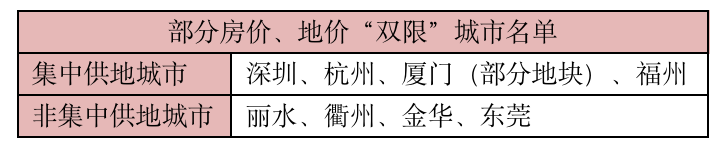 部分城市對房價、地價進行了“雙限”,除了參與集中供地的深圳、杭州、廈門、福州等城市以外,22城以外還有麗水、衢州、金華等相對較熱的三四線城市跟進,對市區、或部分區域出讓地塊實行“雙限”。