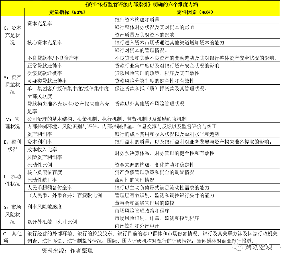 1、監(jiān)管評(píng)級(jí):依據(jù)《商業(yè)銀行監(jiān)管評(píng)級(jí)辦法》