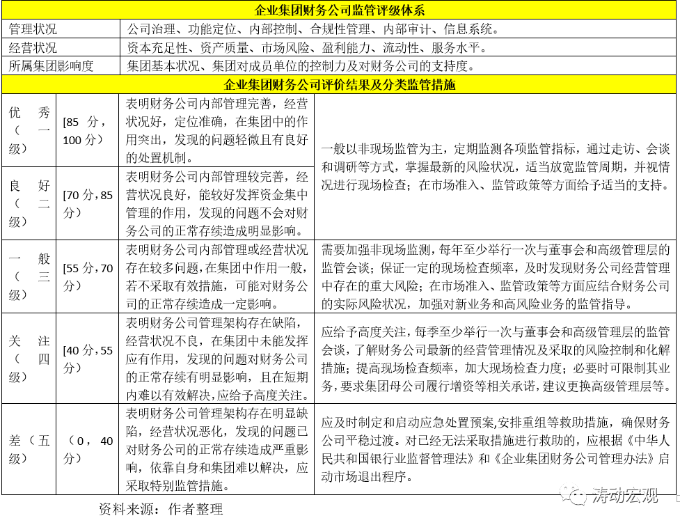 這里我們討論企業(yè)集團(tuán)財(cái)務(wù)公司的監(jiān)管評(píng)級(jí),監(jiān)管評(píng)級(jí)主要基于管理狀況、經(jīng)營(yíng)狀況和所屬集團(tuán)影響度等三個(gè)維度。
