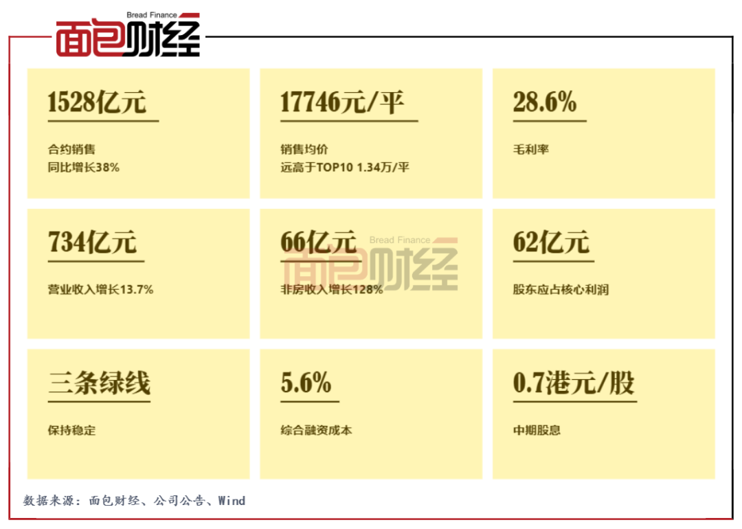 公司“大飛機”戰略下,多元業務持續發展,上半年非房開業務營業收入達到66億元,同比增長128%。其中,物業管理業務表現突出,營業收入、歸母凈利潤分別較去年同期增長171%、136%。