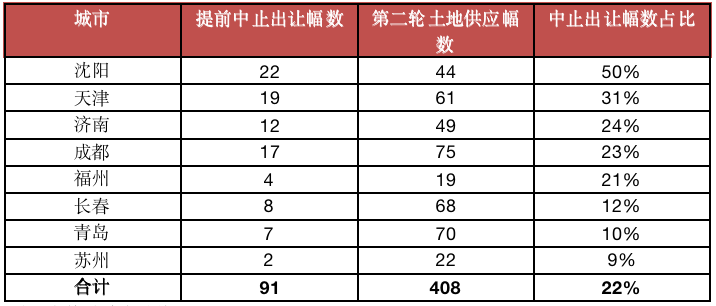 表:重點(diǎn)城市第二輪集中土拍提前中止地塊情況
