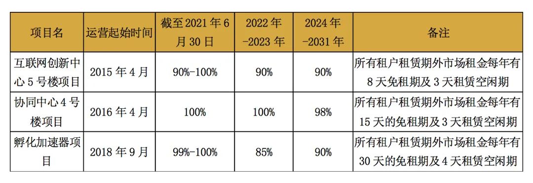 表10 建信中關(guān)村REIT標(biāo)的基礎(chǔ)設(shè)施項(xiàng)目出租率預(yù)測(cè)