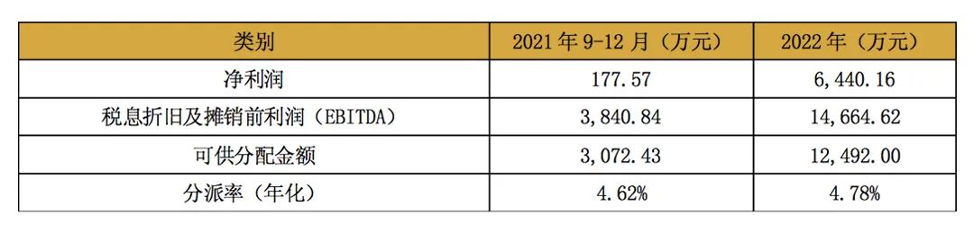根據(jù)基金可供分配金額測(cè)算報(bào)告,2022年EBITDA為14,664.62萬(wàn)元,略高于2020年的14,323.14萬(wàn)元。2021年9月30日至2021年12月31日及2022年度,預(yù)測(cè)的建信中關(guān)村REIT投資人凈現(xiàn)金流分派率(年化)分別為4.62%及4.78%。此前,東吳蘇園產(chǎn)業(yè)REIT、華安張江光大REIT、博時(shí)蛇口產(chǎn)園REIT三支園區(qū)基礎(chǔ)設(shè)施REIT項(xiàng)目預(yù)期派息率分別為4.5%、4.16%、4.74%。