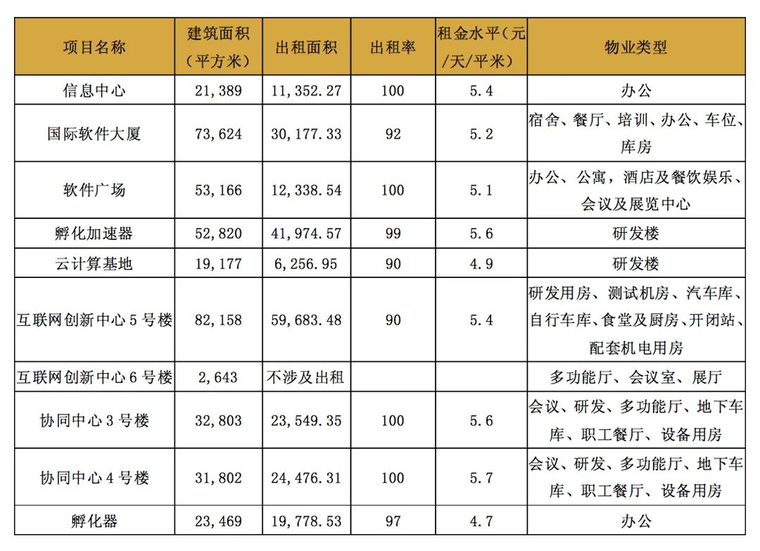 表12 中關(guān)村軟件園公司持有園區(qū)資產(chǎn)情況