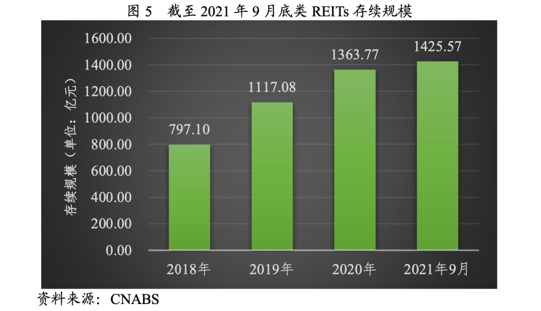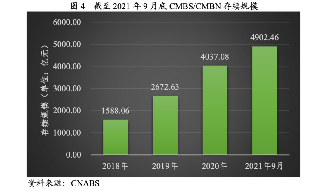 CMBS以寫字樓、酒店、商場、公寓、物流地產等商業地產作為底層標的物業,以標的物業抵押貸款債權為基礎資產發行資產支持證券,其本質可以看做是房企的抵押貸款。近三年,房企CMBS存續規模呈逐年遞增態勢,截至2021年9月底,房企CMBS存續規模4902.46億元。CMBS由于其債權屬性,且所有權及風險未發生轉移,因此無法出表,CMBS產品期限較長,且為有息負債,故會計記賬時借銀行存款,貸長期借款、長期應付款、其他非流動負債等科目,由于涉及長期有息債務科目調整,故即三道紅線中可能導致剔除預收后的資產負債率上升,凈負債率不變,現金短期債務比上升。