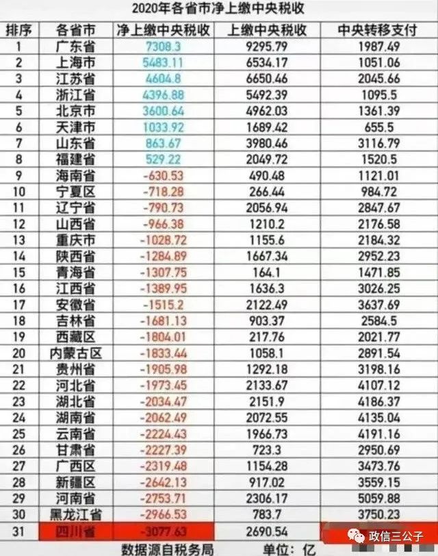 而在整個(gè)2020年度,各省市凈上繳中央稅收,排名最后的依次是: