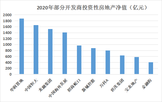 TOP50開發(fā)商2020年投資性房地產(chǎn)凈值合計(jì)約為1.6萬億元,其中,投資性房地產(chǎn)凈值規(guī)模前三位分別為華潤(rùn)置地1873億元、中國(guó)恒大1658億元、龍湖集團(tuán)1524億元,前十位規(guī)模合計(jì)約為1.07萬億元,占TOP50開發(fā)商合計(jì)規(guī)模的66.87%。35家開發(fā)商持有物業(yè)規(guī)模在100億元以上,成為不動(dòng)產(chǎn)市場(chǎng)的最大業(yè)主方。