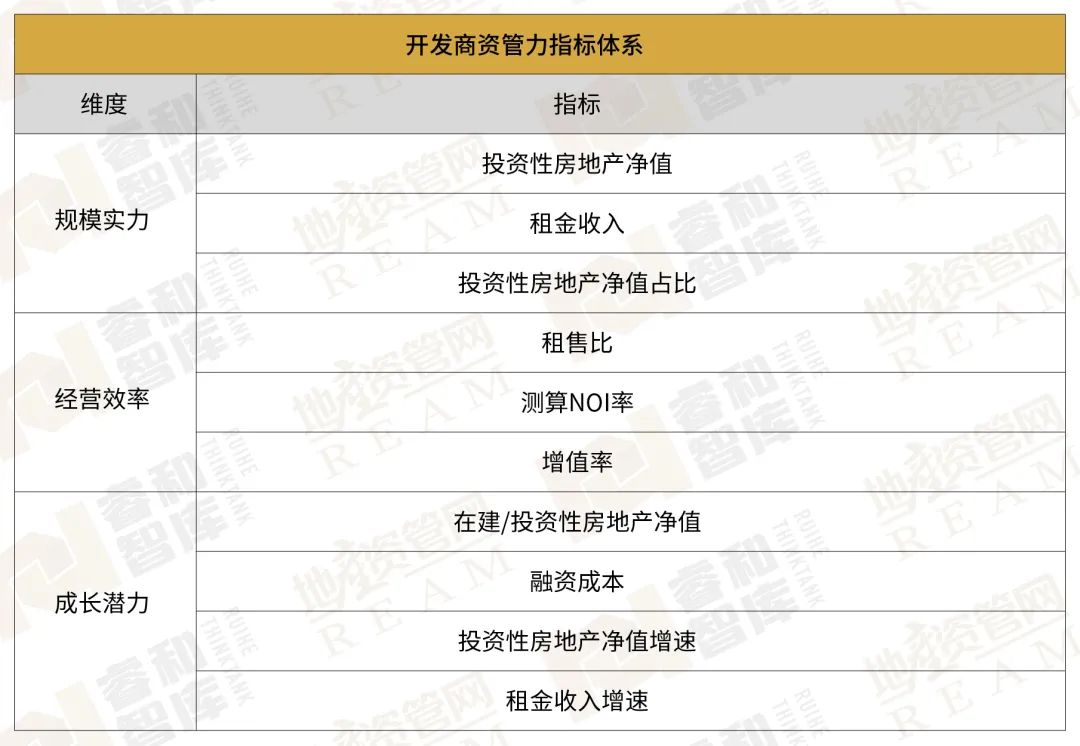 睿和智庫(kù)長(zhǎng)期對(duì)開發(fā)商的投資物業(yè)規(guī)模、運(yùn)營(yíng)效率、未來的發(fā)展?jié)摿Φ确矫孢M(jìn)行量化研究,發(fā)掘具有較強(qiáng)資管力的開發(fā)商,發(fā)揮這些開發(fā)商的示范效應(yīng),以推動(dòng)行業(yè)的轉(zhuǎn)型發(fā)展。