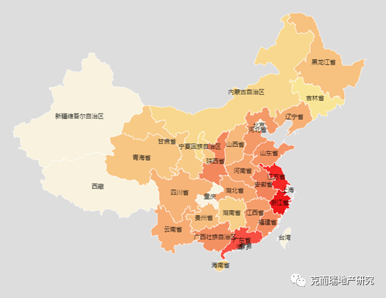 備注:顏色越深代表投資熱度越高,此圖僅監測TOP50房企投資省份(不含港澳臺三地)