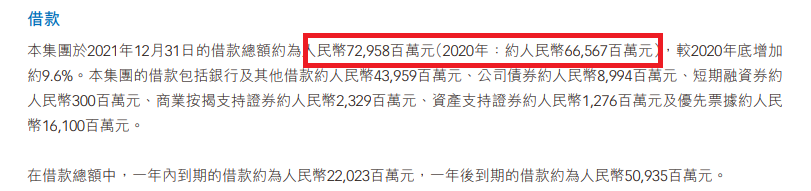 根據(jù)寶龍地產年報的披露,截至2021年末,借款總額約為729.58億元。