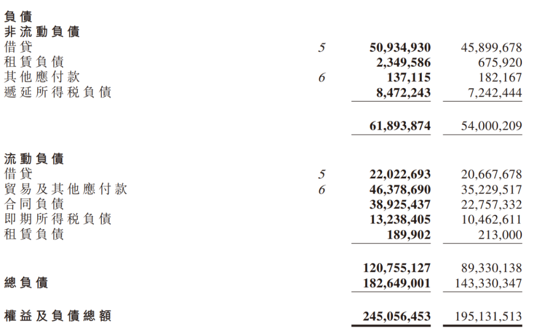 如果看總負債,更是高達1800億元,比2020年末增加了近400億元,其中約有162億元是合同負債增加的,其他主要增加項除了借貸外就是貿易及其他應付款。