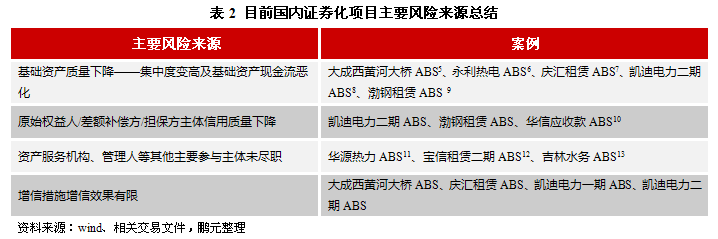 值得注意的是,在對基礎資產質量關注方面,我們還需關注基礎資產及基礎資產所涉及的實物資產是否存在權利瑕疵。例如,華源熱力ABS項目中,原始權益人在2016年1月將供熱管網及配套設備進行抵押擔保,導致基礎資產未來產生現金流能力存在不確定性。