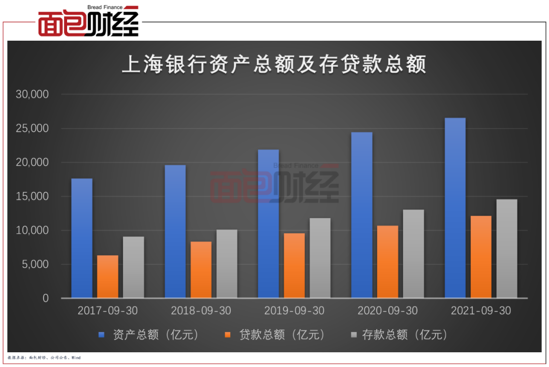 截至2021年9月末,上海銀行資產總額達2.65萬億元,較上年末增長7.71%。其中貸款規模的增長是資產規模增長的主要原因。