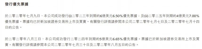 融創(chuàng)中國(guó)當(dāng)然也在想辦法,如上圖,2020年中報(bào)披露,發(fā)行了好幾筆單筆數(shù)億美元的優(yōu)先票據(jù),利率6、7個(gè)點(diǎn)不等。利率高不高,杠桿地產(chǎn)不判斷,桿友覺(jué)得呢?