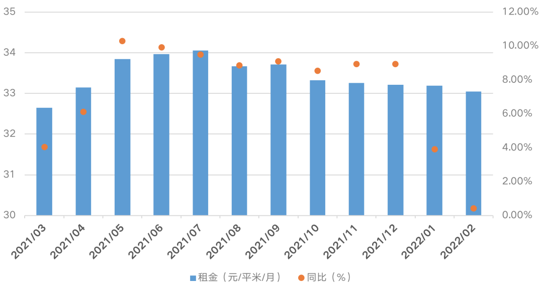 當(dāng)前市場租金價(jià)格仍處于高位,2月單月租金仍接近去年全年平均值,有14個(gè)城市租金水平高于平均租金。