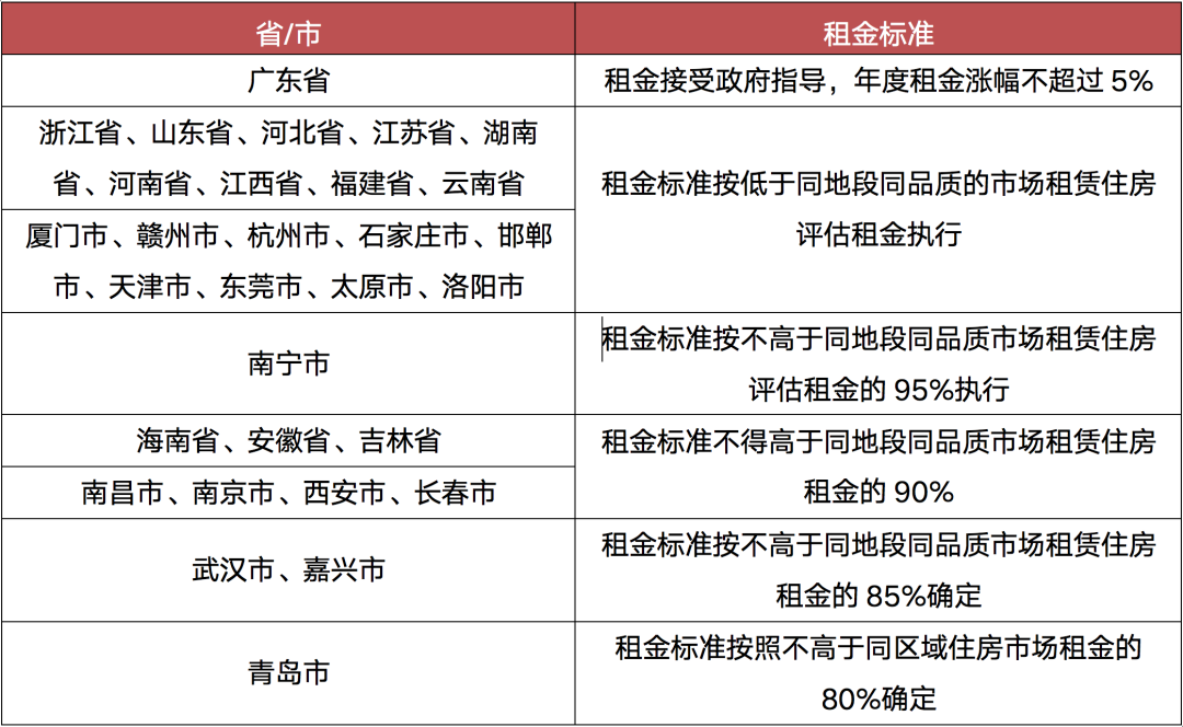 目前來看,廈門市、安徽省規(guī)定市場租金原則上1年評估一次,必要時(shí)可適時(shí)評估;而成都市、佛山市則是由政府部門發(fā)布參考價(jià);上海市、杭州市、福建省等則要求租金標(biāo)準(zhǔn)需委托第三方專業(yè)機(jī)構(gòu)進(jìn)行評估。