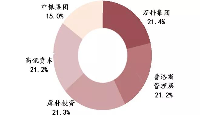 2017年7月,以萬科為首的中國財團以116億美元(約790億元人民幣)正式收購普洛斯,造就了亞洲歷史上最大的私募股權并購案。交易完成后普洛斯將于新加坡交易所退市。收購前,持股比例GIC為36.57%、高瓴資本為8.14%、萊德集團為6.99%、美銀美林集團為5.31%;收購完成后,持股比例萬科集團為21.4%、厚樸投資為21.3%、高瓴資本為21.2%、中銀集團投資有限公司為15%、普洛斯管理層為21.2%。