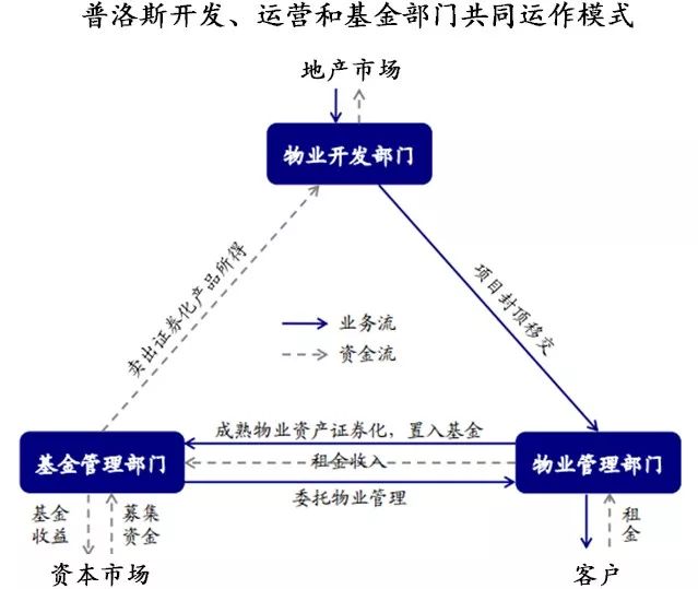普洛斯通過設立基金管理平臺將地產開發、地產運營和地產基金管理三項業務連接起來,實現了物業與資本的閉合循環,同時基金管理部門又可收取管理費和分紅獲利。
