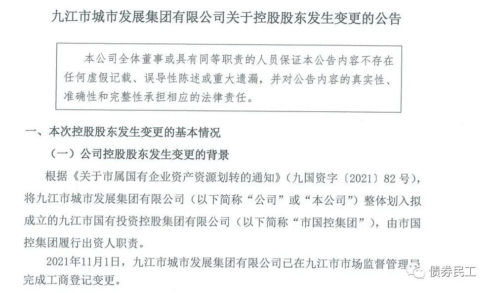 資產(chǎn)無(wú)償劃轉(zhuǎn)和資產(chǎn)置換之后,將區(qū)域內(nèi)的重要國(guó)有資產(chǎn)進(jìn)行了優(yōu)化重組,實(shí)際上為新城投公司的形成和組建提供了基礎(chǔ)。比如九江市城市發(fā)展集團(tuán)有限公司于2021年11月4日公告,公司整體劃入擬成立的九江市國(guó)有投資控股集團(tuán)有限公司,由其履行出資人職責(zé)。九江市國(guó)有投資控股集團(tuán)有限公司的注冊(cè)資本為100億元,暫無(wú)債券發(fā)行記錄。