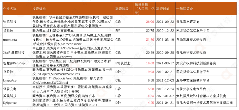 表:順為資本2019-2021年參與融資規(guī)模最大的十大數(shù)字科技企業(yè)