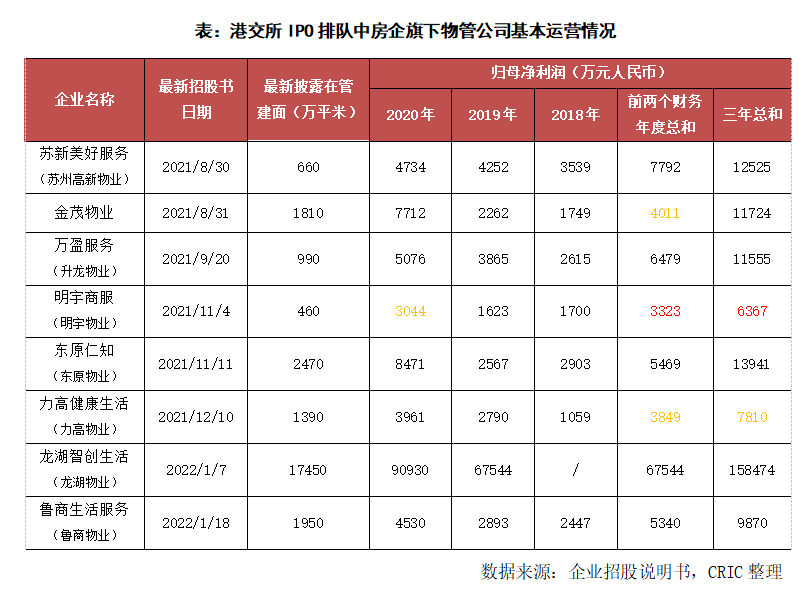 上市門檻的提升導致部分物企在招股書失效后就放棄了繼續上市的嘗試,比如眾安集團旗下的眾安智慧生活等。2021年新遞交上市申請的28家物管企業中,有9家在招股書到期后就暫時放棄了繼續申請上市。而在截至1月27日仍在港交所排隊的房企旗下物管企業中,明宇商服的盈利指標低于港交所門檻,部分企業匯率換算后檫過門檻。整體來看,當前還在排隊等待IPO的房企旗下物管企業中,大部分都能滿足要求。