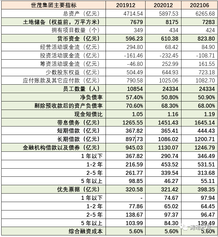 如果從三道紅線來看,世茂無疑是一家還不錯(cuò)的地產(chǎn)企業(yè)。截至2021年6月,世茂集團(tuán)的凈負(fù)債率達(dá)到50.90%、剔除預(yù)收款后的資產(chǎn)負(fù)債率達(dá)到68%、現(xiàn)金短債比達(dá)到1.19,實(shí)際上2019-2020年期間世茂集團(tuán)亦均未踩三道紅線。
