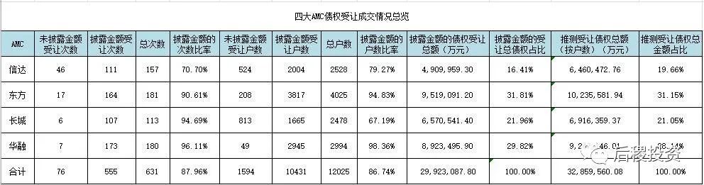 四大AMC在債權不良資產轉讓市場的整體狀況