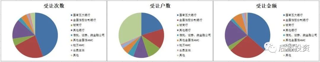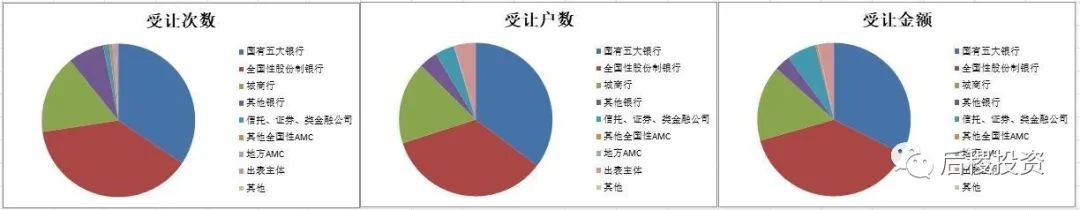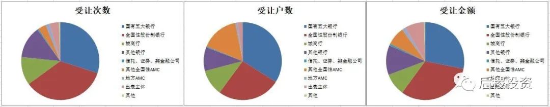 華融的債權受讓來源與東方類似,但國有五大行和全國性股份制銀行的占比相較于東方要稍微高一些,債權受讓來源較為多元化。