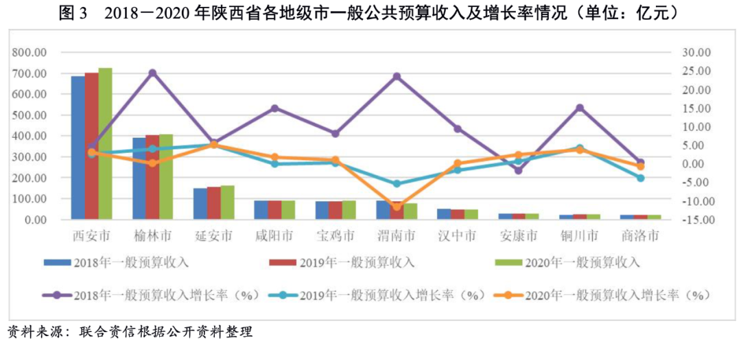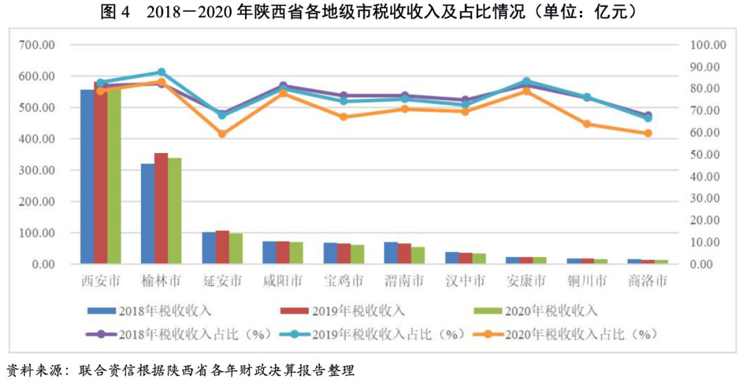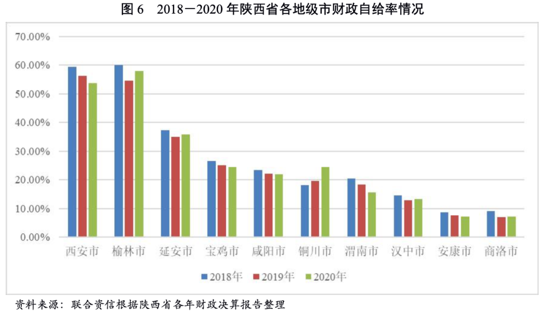 3.陜西省各地級市財政收入對發債城投企業債務的支持保障能力